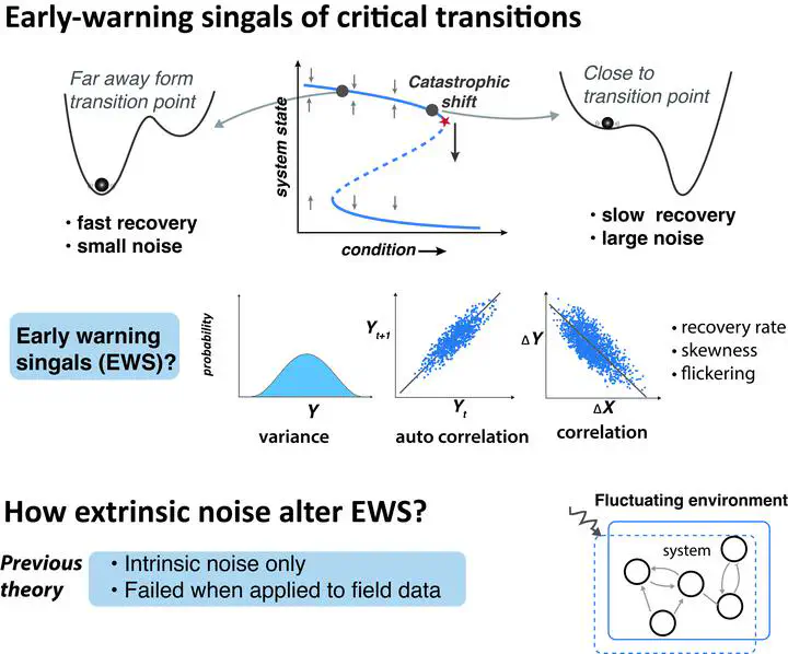 Complex dynamical systems often have tipping points and exhibit catastrophic regime shift. Despite the notorious difficulty of predicting such transitions, accumulating studies have suggested the existence of generic early-warning signals (EWSs) preceding upcoming transitions. However, previous theories and models were based on the effect of the intrinsic noise (IN) when a system is approaching a critical point, and did not consider the pervasive environmental fluctuations or the extrinsic noise (EN). Here, we extend previous theory to investigate how the interplay of EN and IN affects EWSs. Stochastic simulations of model systems subject to both IN and EN have verified our theory and demonstrated that EN can dramatically alter and diminish the EWS. This effect is stronger with increasing amplitude and correlation time scale of the EN. In the presence of EN, the EWS can fail to predict or even give a false alarm of critical transitions.